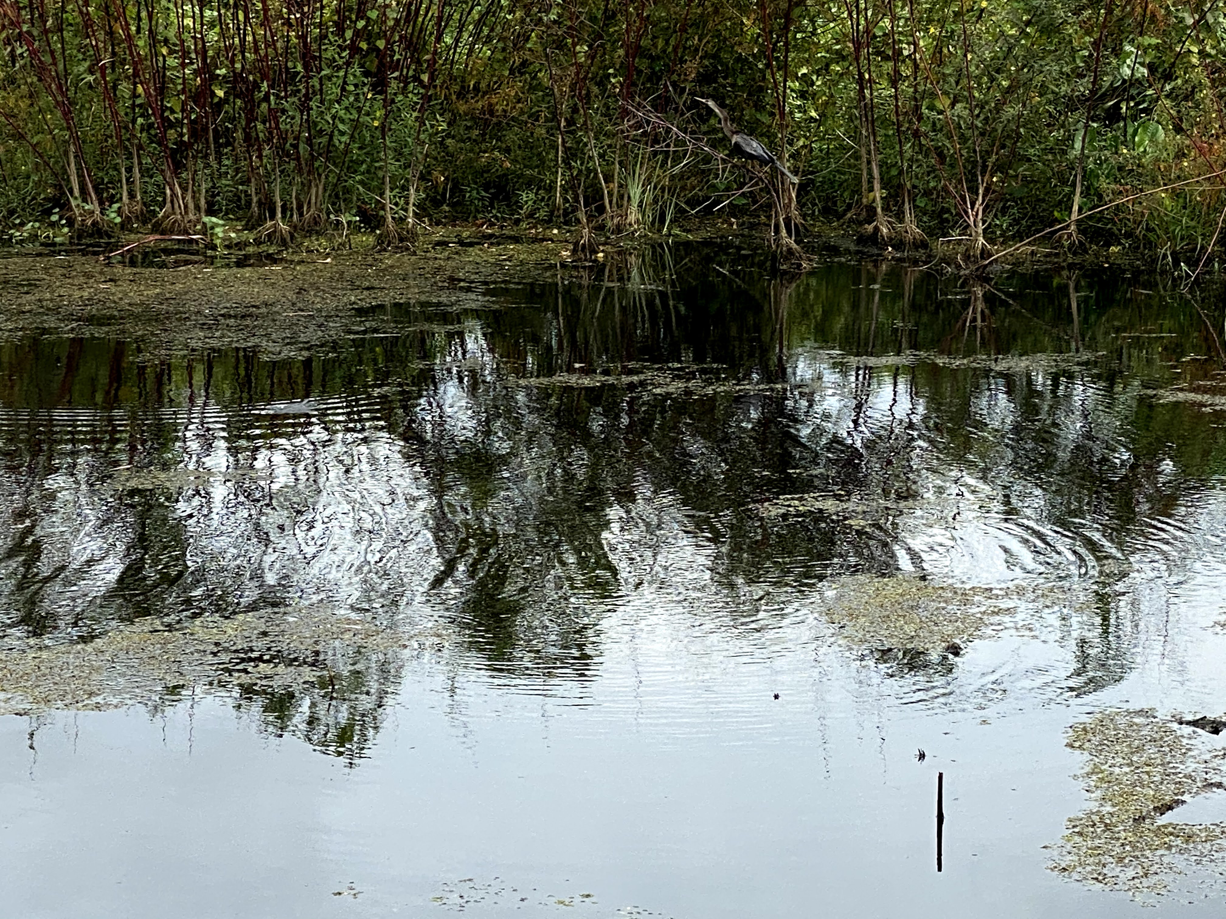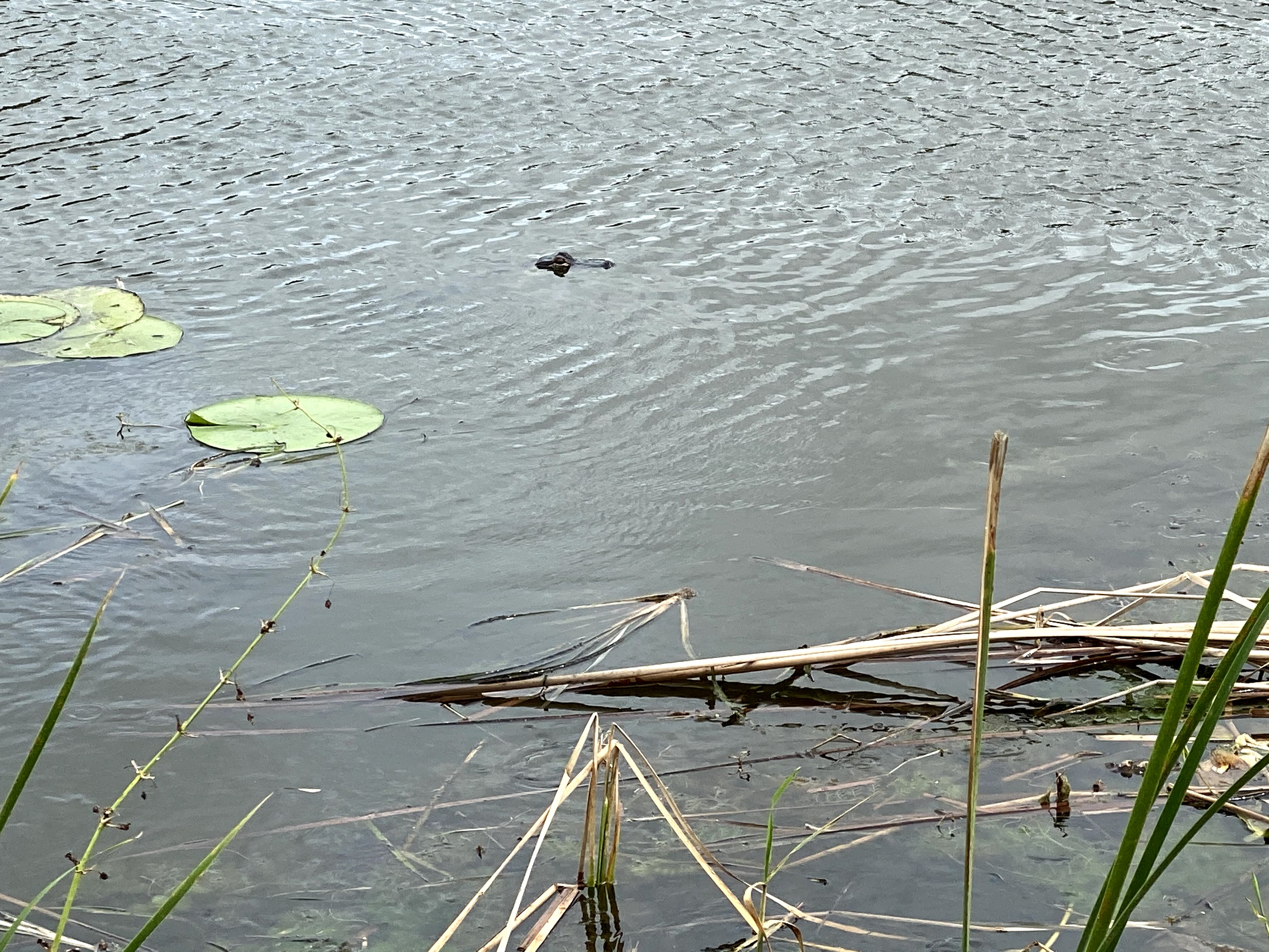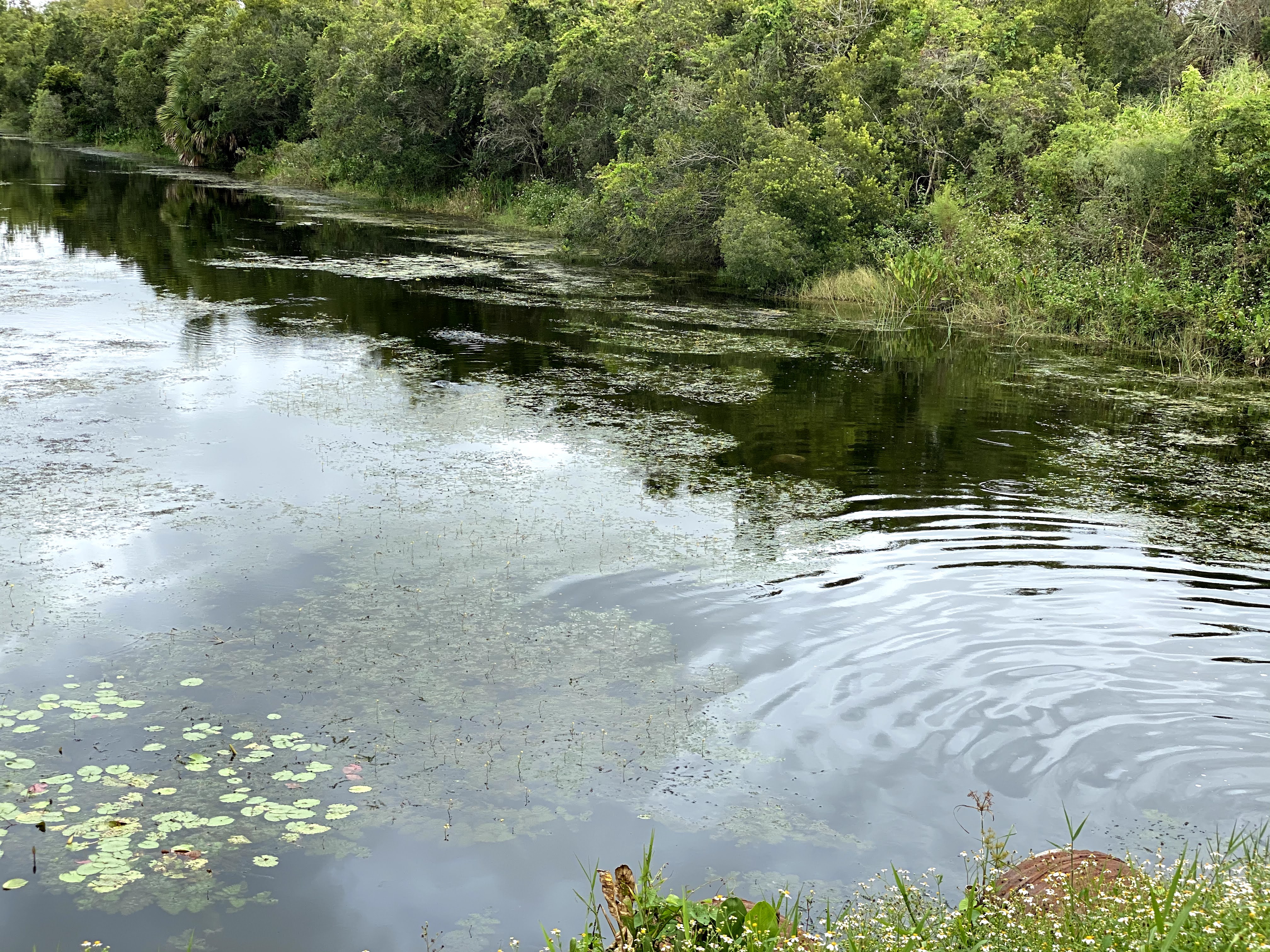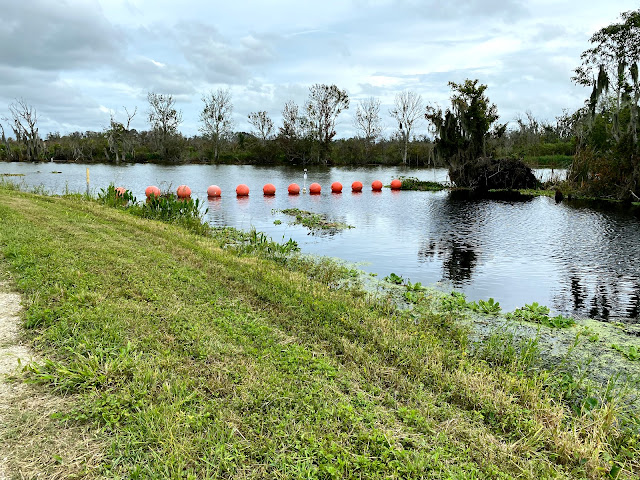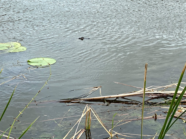 Along the way there are these canals. There is water everywhere. Lot of Birds and Alligators. At one point you see Lake Apopka. If you look carefully the next picture You can see an Alligator. I mainly saw little ones. They would sun bathe and  when they hear your foot steps jump in the water.