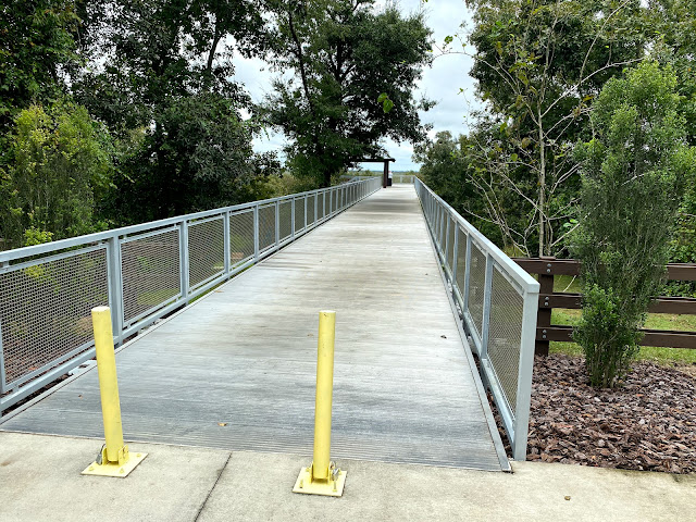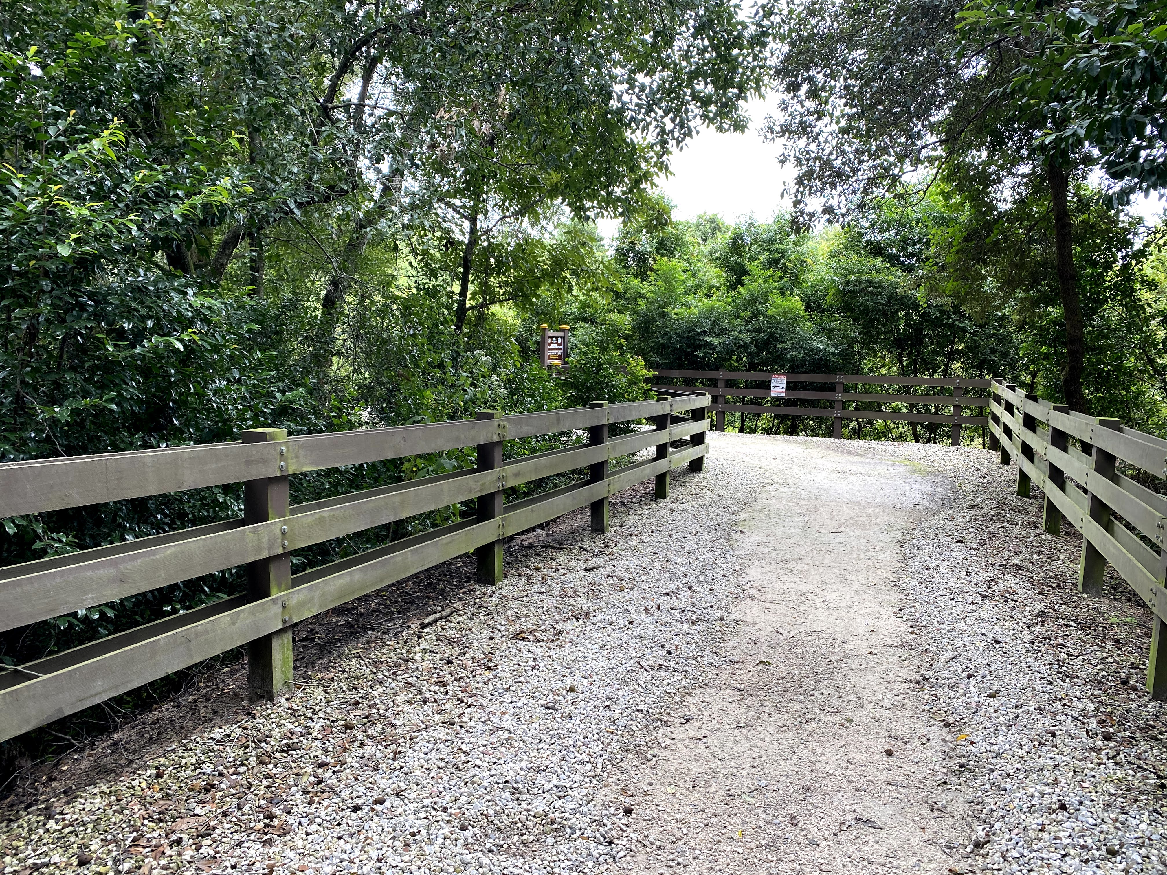 This is a beautiful place to hike not far from Orlando. The entire trail is gravel. There are areas you can go that is grass. This is a well maintained trail. There are many places that you could enter the trail. It is a very long trail with loops. You have to pay attention to the loops that could mislead direction.