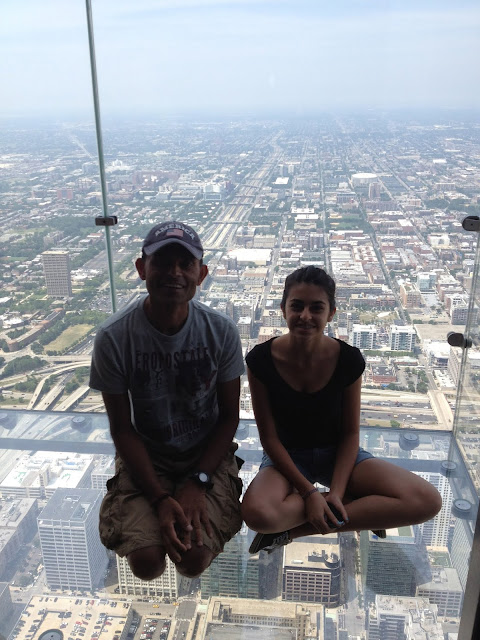 Formerly Sears Tower is a 110 stories skyscraper. For an entrance fee you could go to the top. They have some cool stuff. One of them is the Sky Deck. Where the window goes outside and you can stand on clear glass and look down. It was scary as heck but its fun. From the top you are able to see sky scrapers all around and also able to see miles and they claim you could see four states.