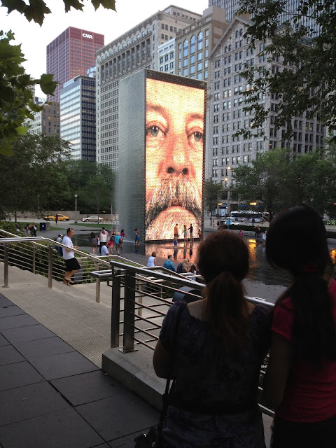 The Crown Fountain is so unique the picture changes on the wall and waterfall on the sides. Children go crazy here just like in water fountains all over. It is such a fun place.