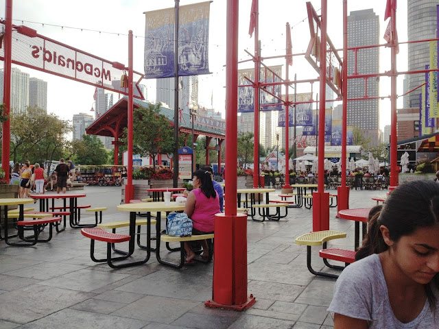 The Navy Pier is a fun place to spend a whole afternoon. There are restaurants and Gift shops. There is a huge Ferris wheel, Carousel ride and Arcade places. The Ferris wheel is so high you have a spectacular view of the city.
