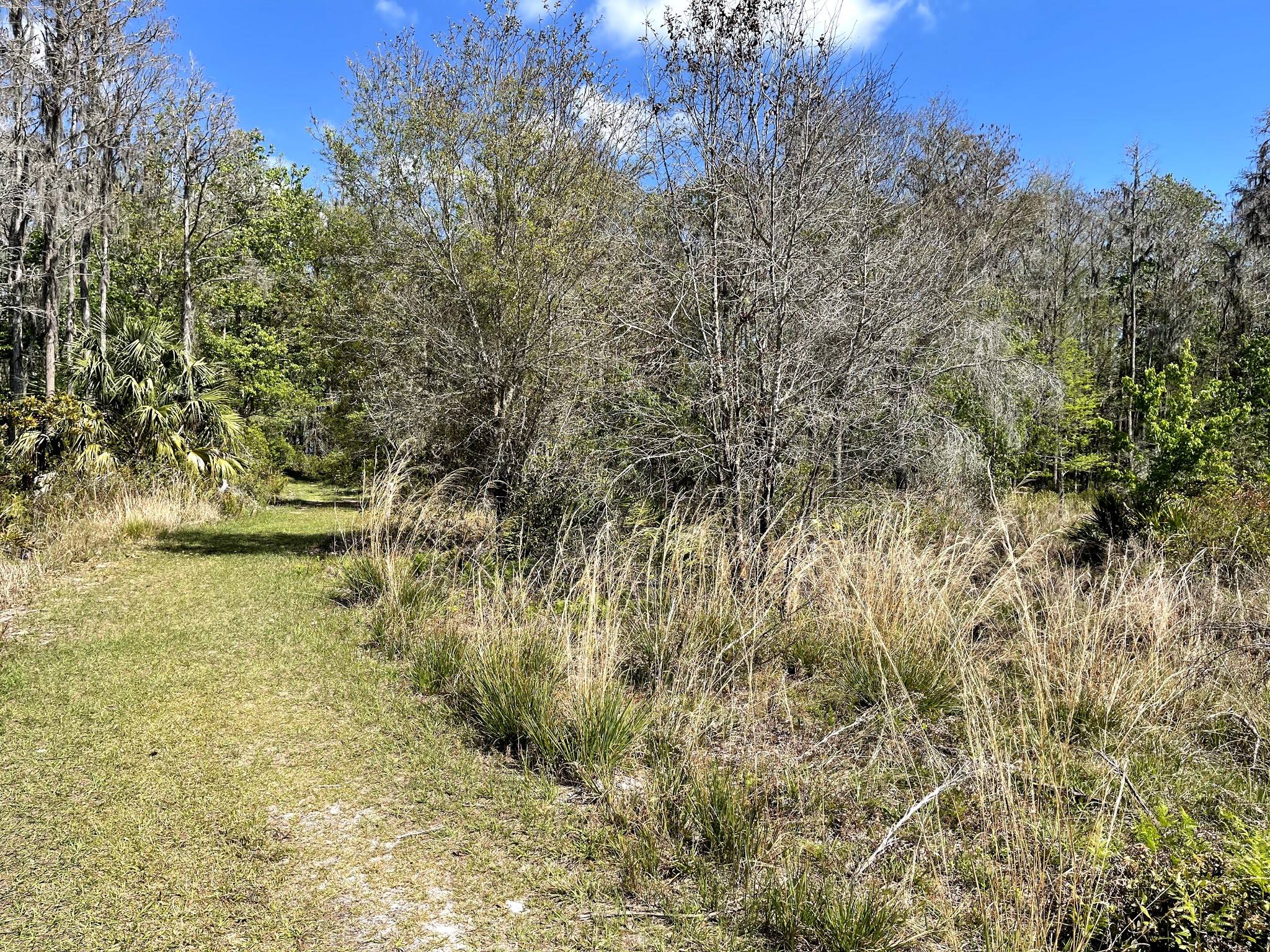 The trails are not highly trafficked and most area of the trail you walk on soft grass. Some areas are sandy and gravel. There is an area of boardwalk as the land there is wet.