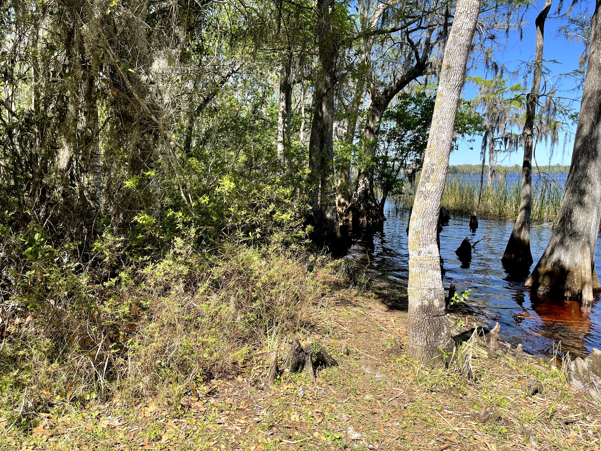 There are picnic tables and benches along the length of the trail. It is very peaceful. The only noise you would hear are from the birds. The picnic areas are in the shade. There is lake access on the red part of the trail with no lake shore. A beautiful view of the lake.